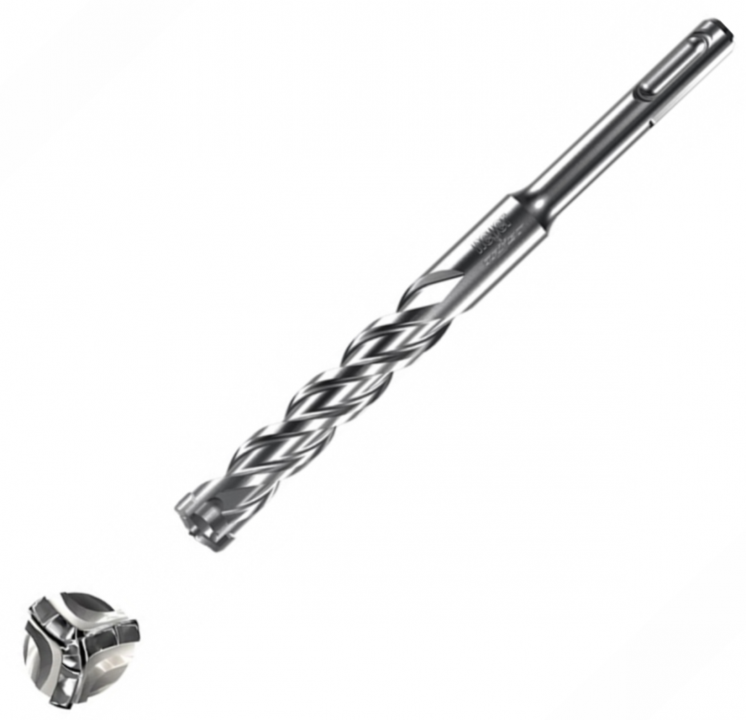 - Первоклассный бур с тремя режущими кромками для бетона и арматуры.
