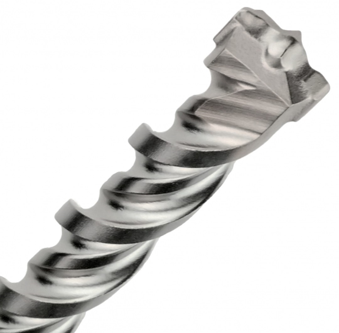 Бур имеет хвостовик типа SDS-plus. Четырехзаходная спираль способствует быстрому и эффективному удалению сверлильной пыли из отверстия, кроме этого приводит к уменьшению нагрева оснастки. Твердосплавный наконечник, а также усиленное тело бура гарантируют высокую износостойкость и длительный срок эксплуатации. Корпус бура выполнен из высокопрочной инструментальной стали.
