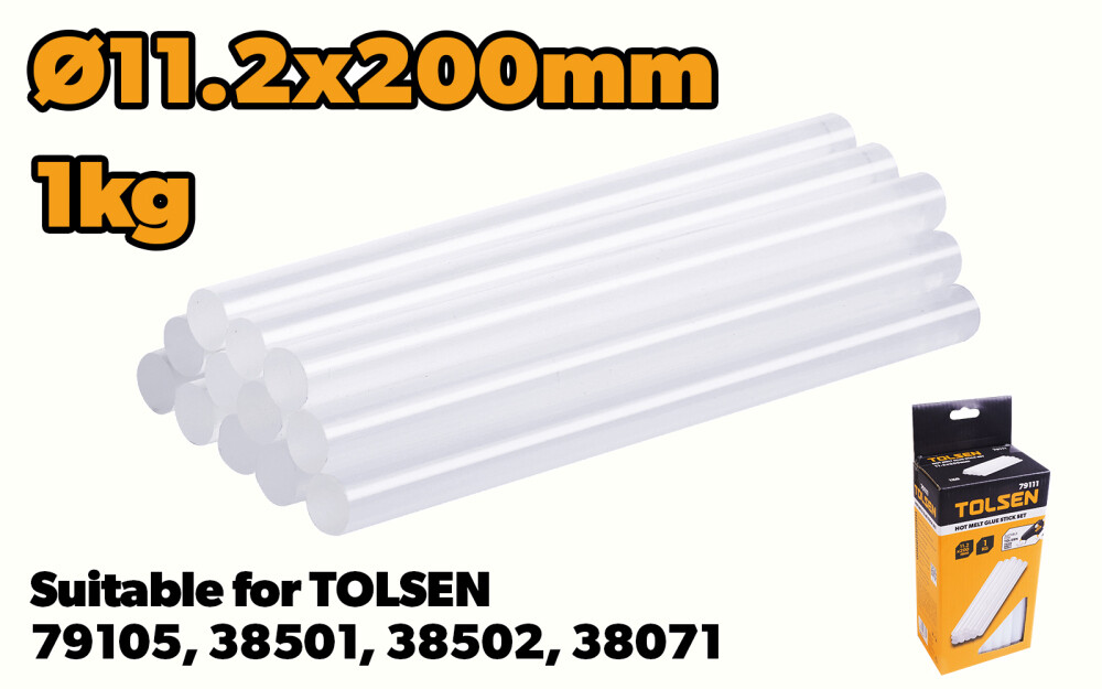 Diametrul de 11,2 mm și lungimea de 200 mm sunt standard industrial, compatibile cu majoritatea pistolului de lipit Tolsen și altor branduri, evitând achiziția separată de consumabile.
