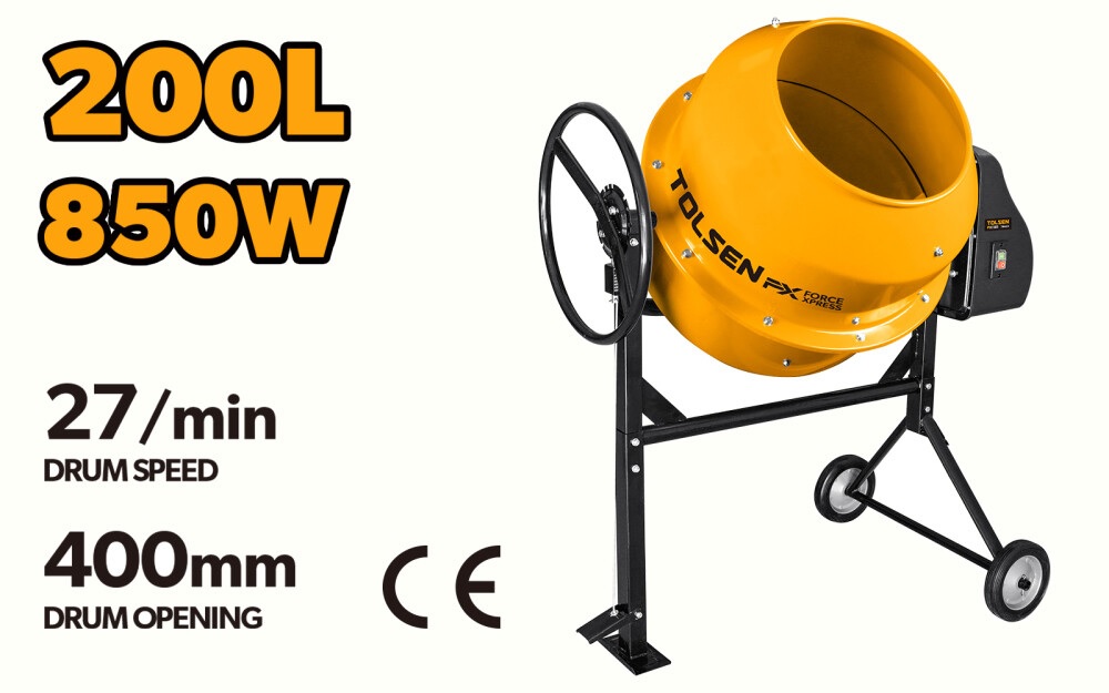 Îl poți muta într-o nouă locație cu efort minim datorită unei perechi de roți. Prezența unui volan mărește pârghia pe tambur și simplifică răsturnarea și vă permite să reglați unghiul de înclinare în timpul amestecării.