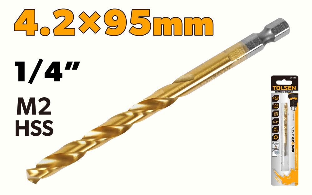 Burghiu pentru metal HSS-M2 4.2mm coada HEX Tolsen
