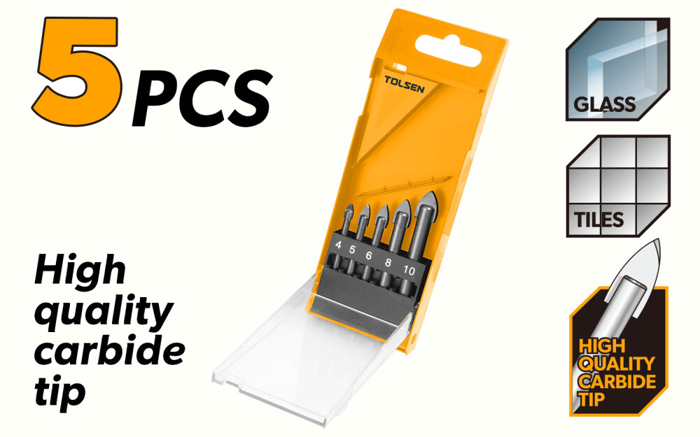Set 5 burghii pentru sticla si ceramica 4-10mm Tolsen