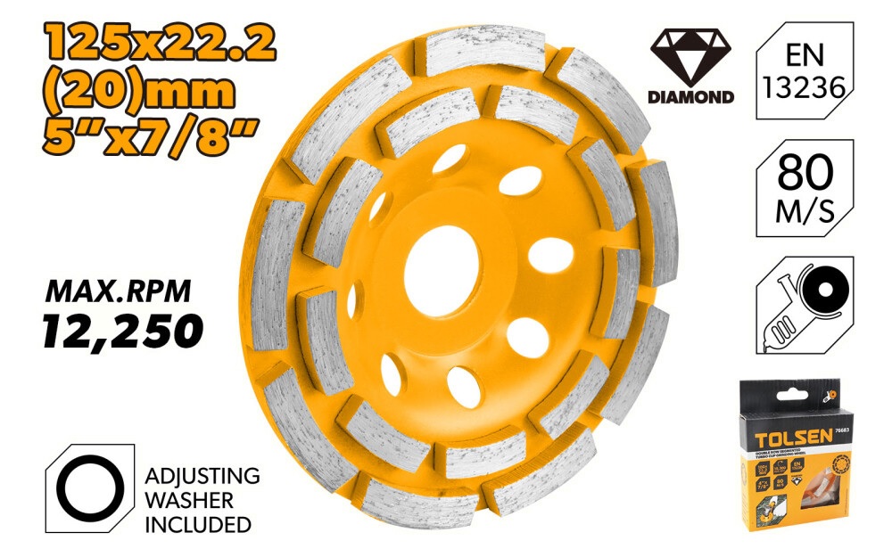 Disc cupa diamantata 125x22,23mm segment dublu Tolsen