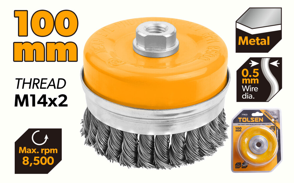 Forma în cupă oferă acces facil la spaţii interne, muchii şi suprafeţe neuniforme. Firul din oţel răsucit oferă curăţare agresivă, controlată şi uzură uniformă pentru durată extinsă