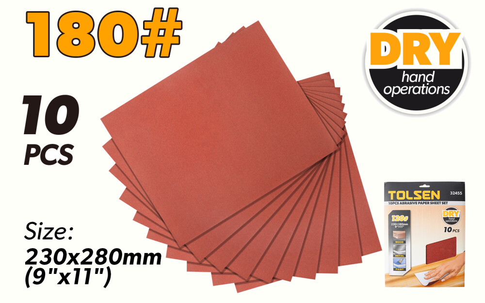 - Set 10 foi abrazive 230x280mm #180 Tolsen