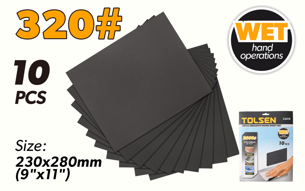- Set 10 foi abrazive 230x280mm #320 Tolsen