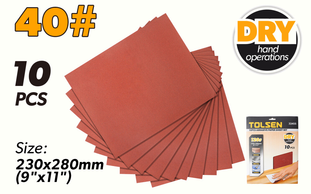- Set 10 foi abrazive 230x280mm #40 Tolsen
