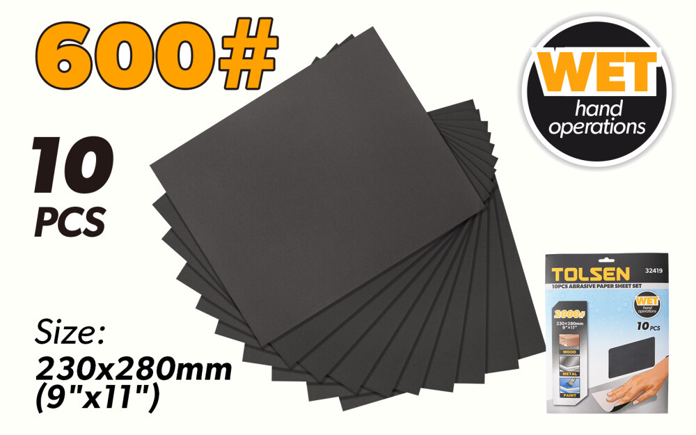 - Set 10 foi abrazive 230x280mm #600 Tolsen
