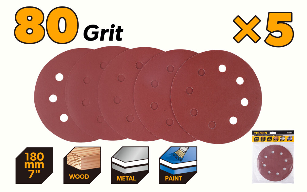 Set 5 discuri abrazive pentu slefuit 180mm #80 Tolsen