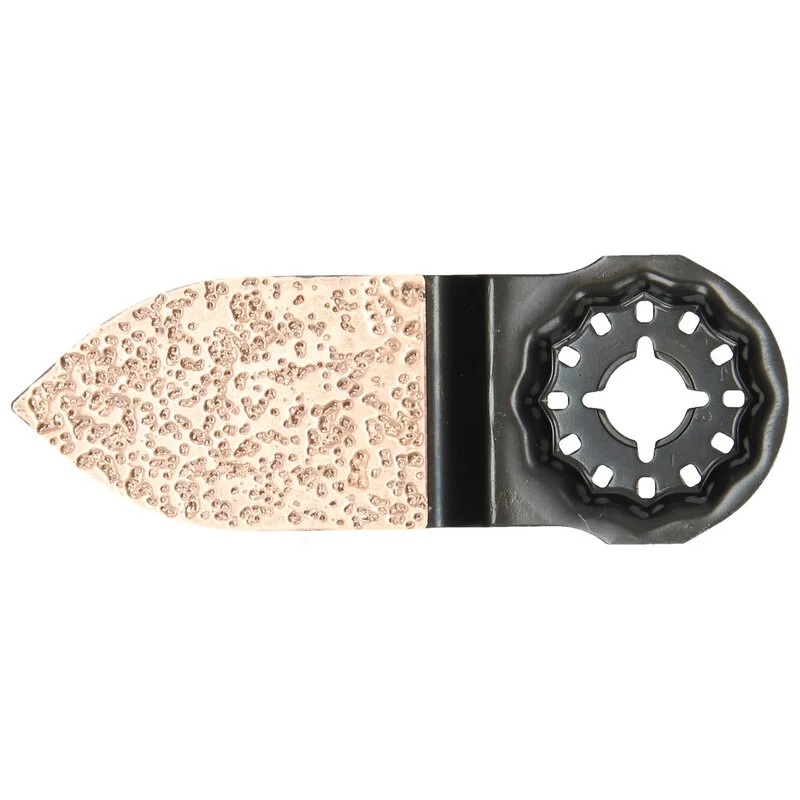 Construcția subțire și profilul îngust permit lamei să realizeze șlefuire și curățare în locuri înguste și colțuri, unde alte accesorii nu pot ajunge. Acoperirea abrazivă din carbură cu granulație P40 asigură îndepărtarea eficientă a resturilor dure și reduce blocarea lamei. Tija Starlock oferă fixare rapidă şi sigură pe uneltele multifuncționale, eliminând jocul și îmbunătățind transmiterea energiei la șlefuire.