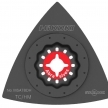 Lama este dotată cu un strat abraziv din carbură dură sinterizată, ceea ce extinde durata de viaţă la contactul cu materiale abrazive dure şi permite şlefuiri grosiere cu uzură minimă. Forma triunghiulară a lamei o face ideală pentru prelucrarea colţurilor, rosturilor şi spaţiilor înguste, oferind un mod de lucru confortabil în locuri greu accesibile.