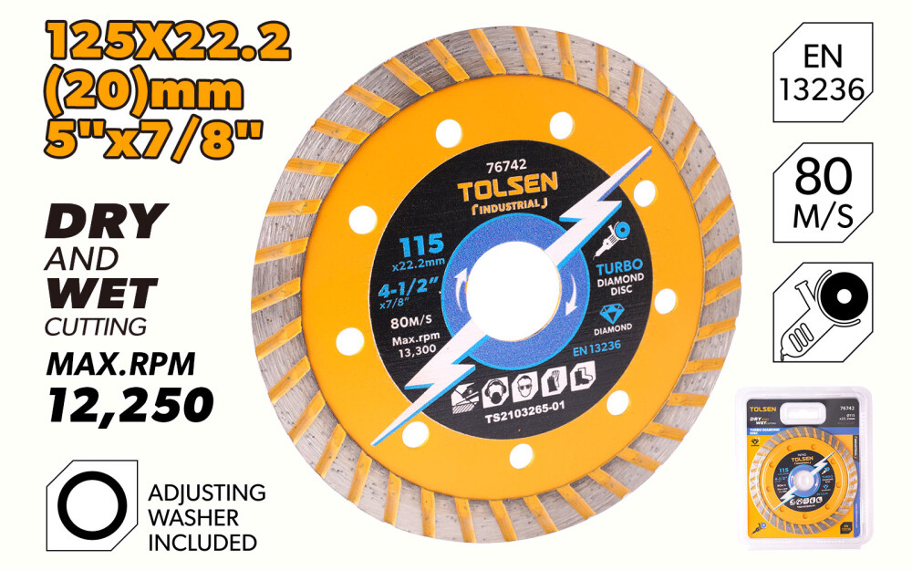 Disc diamantat 125x22,2mm Turbo Industrial Tolsen