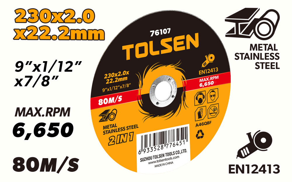 Отрезной диск Tolsen идеально подходит для резки металлов и нержавеющей стали. Этот диск идеально подходит для строительных и промышленных проектов. Благодаря плоскому центру этот диск обеспечивает точный и чистый рез.