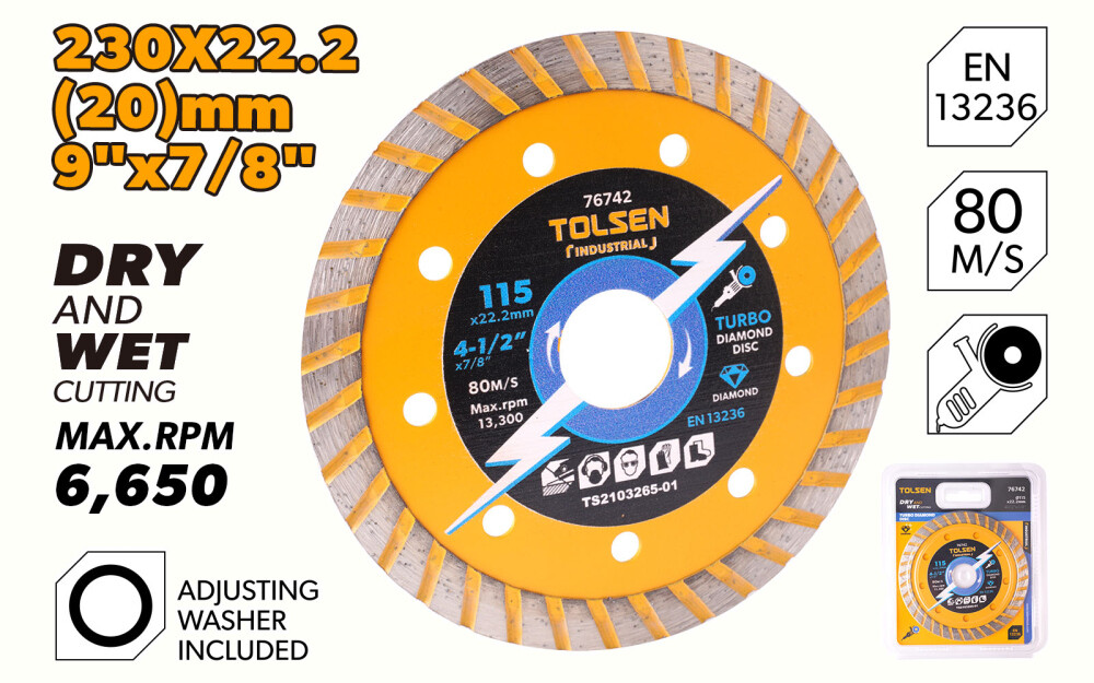 - Диск aлмазный 230x22,2мм Turbo Industrial Tolsen