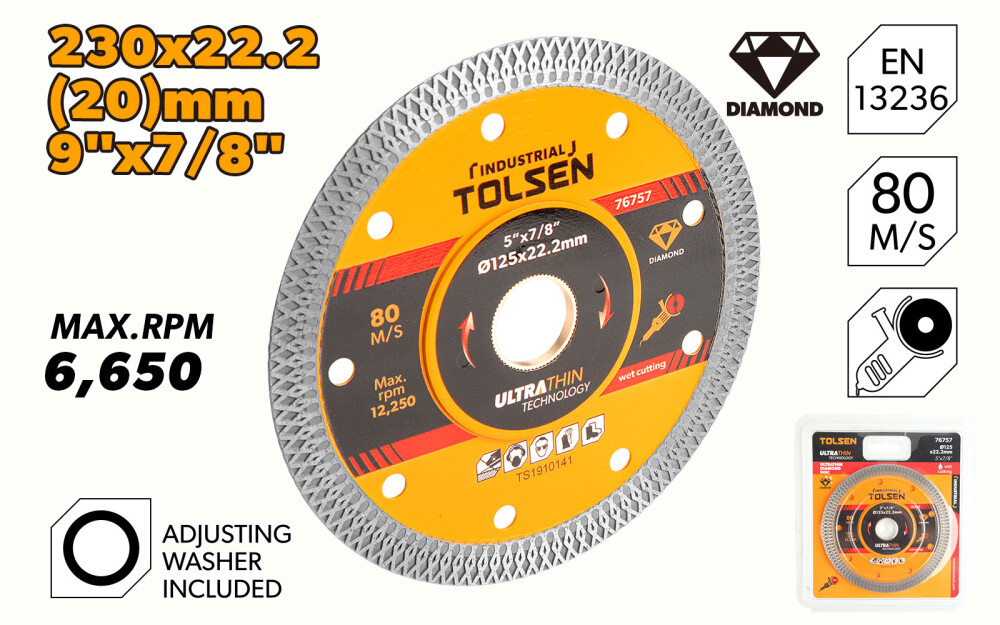 - Диск aлмазный 230x22,2мм ультратонкий Industrial Tolsen