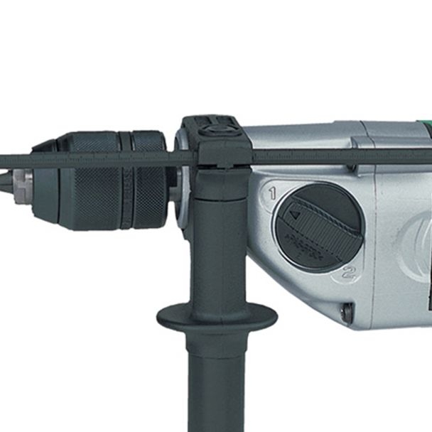 Профессиональная 2-х скоростная дрель. Дрель оснащена очень мощным двигателем, что позволяет ей делать отверстия в древесине диаметром до 40 мм. Электронная система регулирования скорости и изменения направления вращения Вспомогательная рукоятка с ограничителем глубины, которую можно установить в любом положении, для операций, требующих работы обеими руками Кнопка для блокировки оборотов
