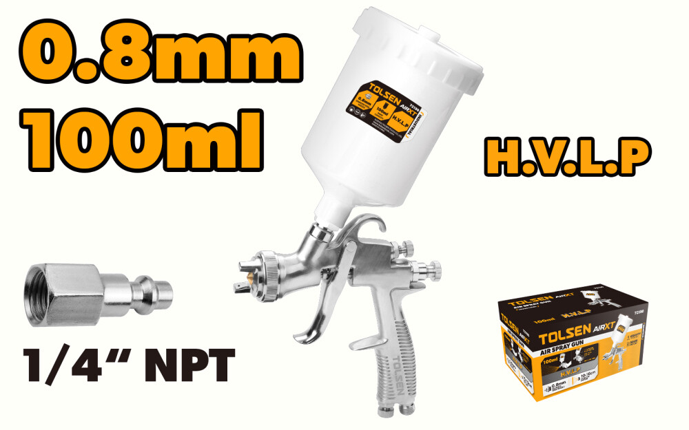 Пистолет покрасочный пневматический 0.8мм 100мл Tolsen