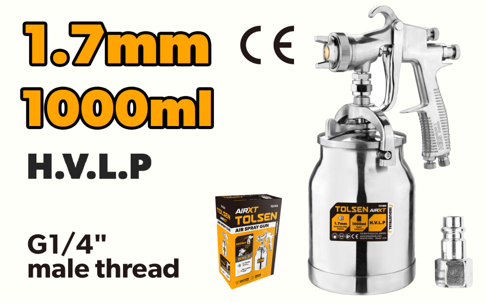 - Пистолет покрасочный пневматический 1,7мм 1000мл Industrial Tolsen