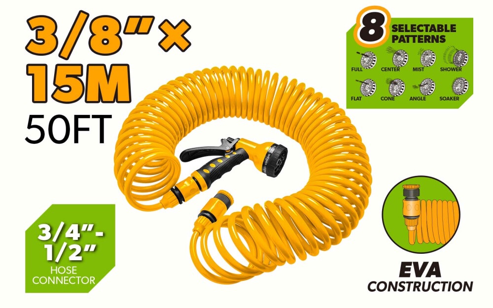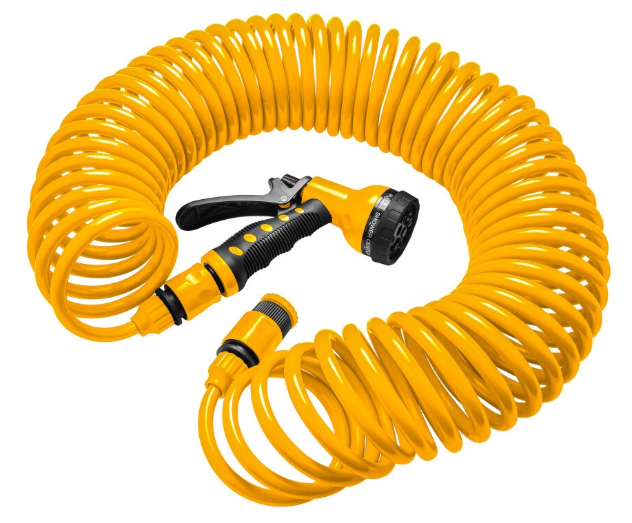 Furtun spiralat 15m p/u gradina cu pistol de stropit 8 functii Tolsen