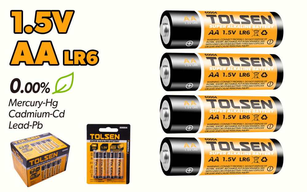 Baterii Super Alcaline AA 1.5V set 4 buc Tolsen