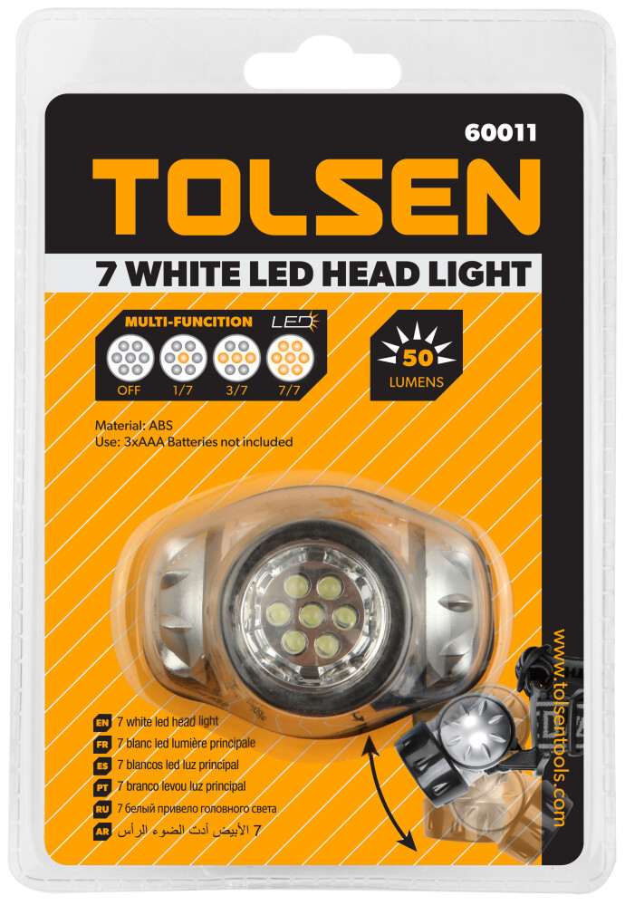 Lanterna de cap pe baterii 50Lu 10m Tolsen