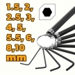 - Размеры ключей: 1,5/2/2,5/3/4/5/5,5/6/8/10 мм
