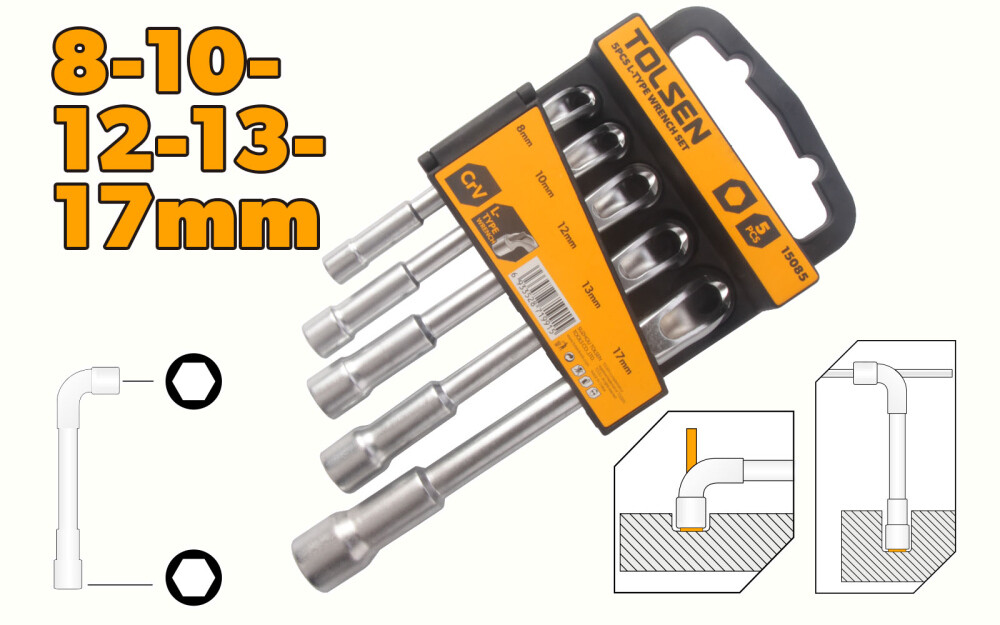 Набор из 5 торцевых ключей L-типа 8-17 мм 15085 Tolsen