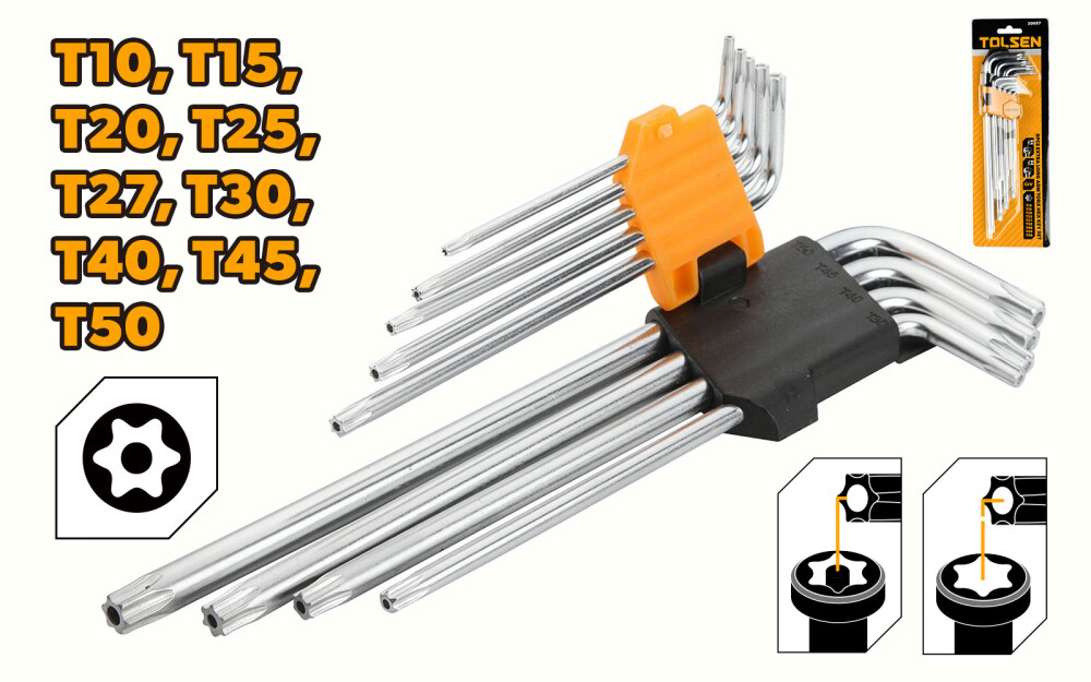 - Набор из 9 длиных ключей TORX T10-T50 20057 Tolsen