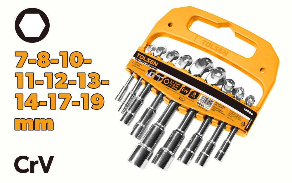 - Набор из 9 торцевых ключей L-типа 7-19 мм 15086 Tolsen