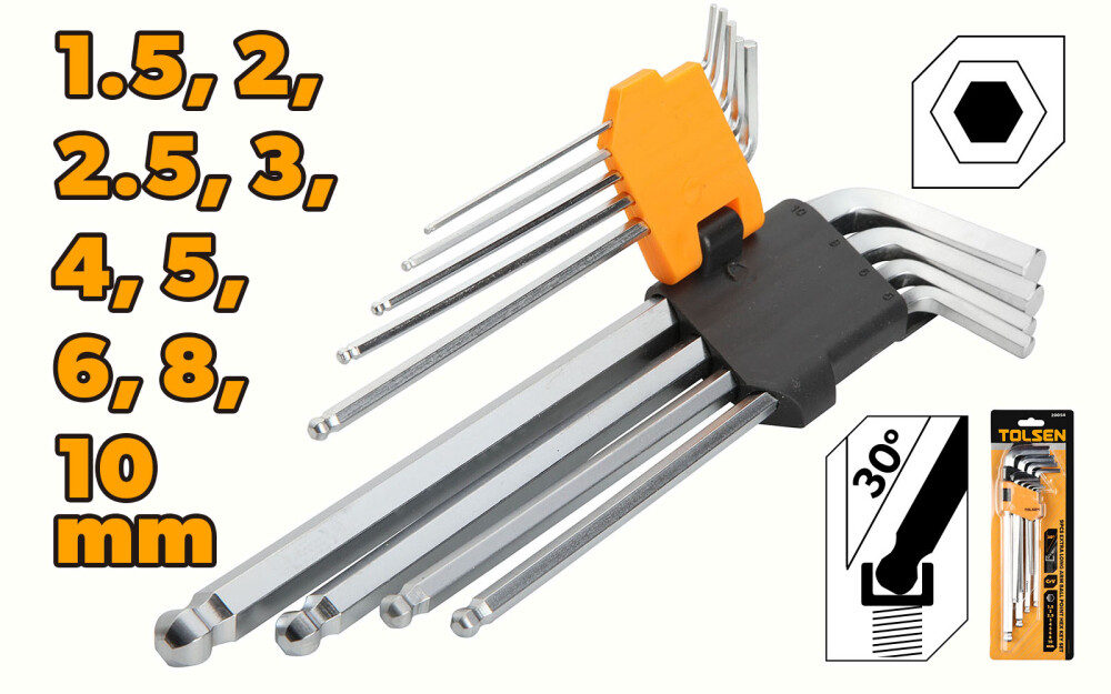 - Набор шестигранников 9 предметов, с шаром 20054 Tolsen
