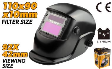 Эта автоматическая сварочная маска Tolsen питается от солнечных элементов и литиевых аккумуляторов и имеет кнопку регулировки затемнения и регулируемую чувствительность. Подходит для сварочных аппаратов и резаков ARC, TIG, MIG, точечной, микросварки, сварки проволокой, переменного тока, постоянного тока и плазмы.
