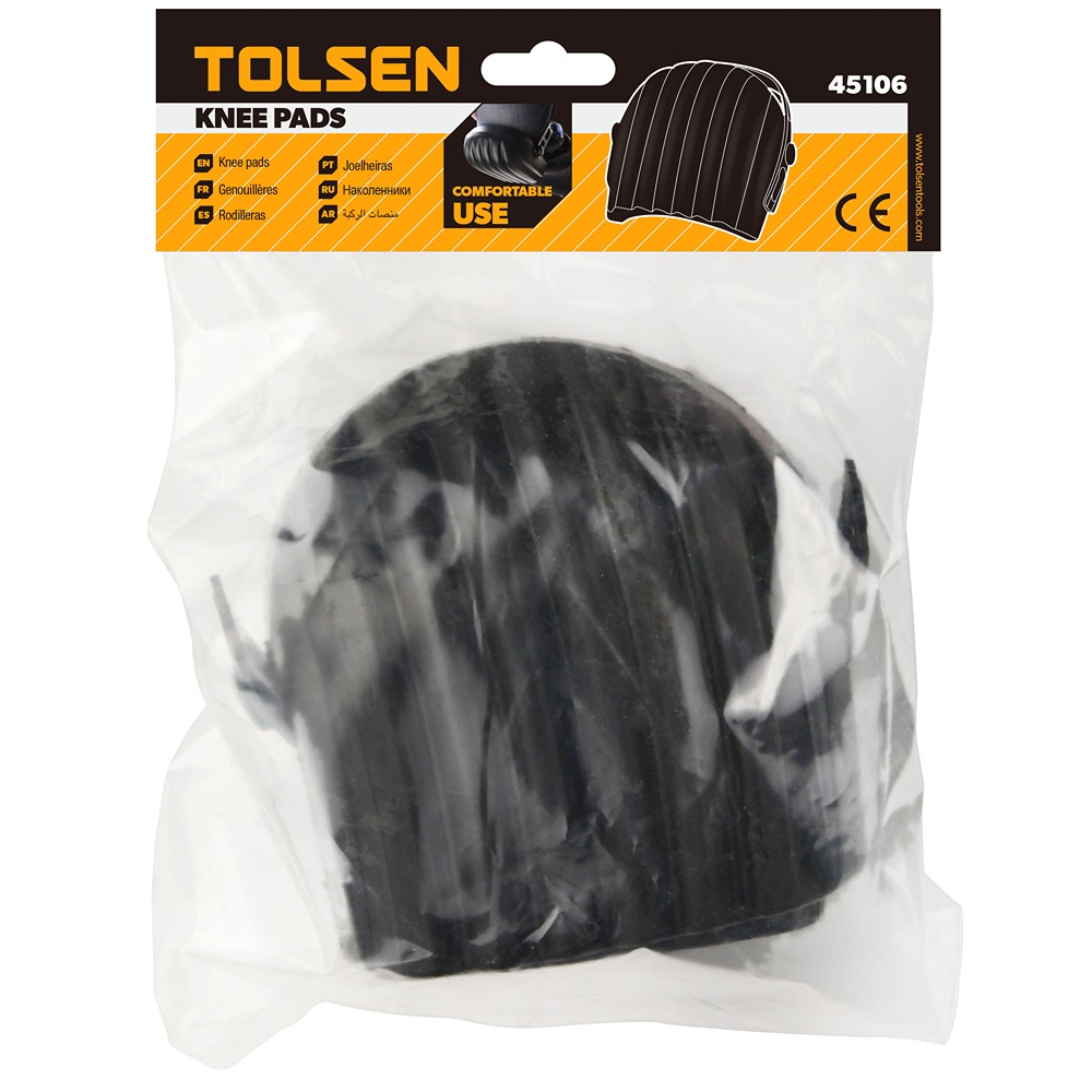 Наколенники внутренне наполнены пеной высокой плотности и гелевой вставкой (или эффектом Gel), что усиливает амортизацию и помогает равномерно распределять нагрузку на коленный сустав при контакте с твёрдым основанием. Внешняя оболочка выполнена из мягких, эластичных материалов (полиэстер + хлопок), которые облегчают посадку и комфортное прилегание к ноге, не вызывая натираний или дискомфорта при движении. Наколенники имеют универсальный размер и компактную конструкцию, что позволяет легко носить их поверх одежды или хранить без лишнего объёма. Подходят для различных типов работ и не мешают движению.