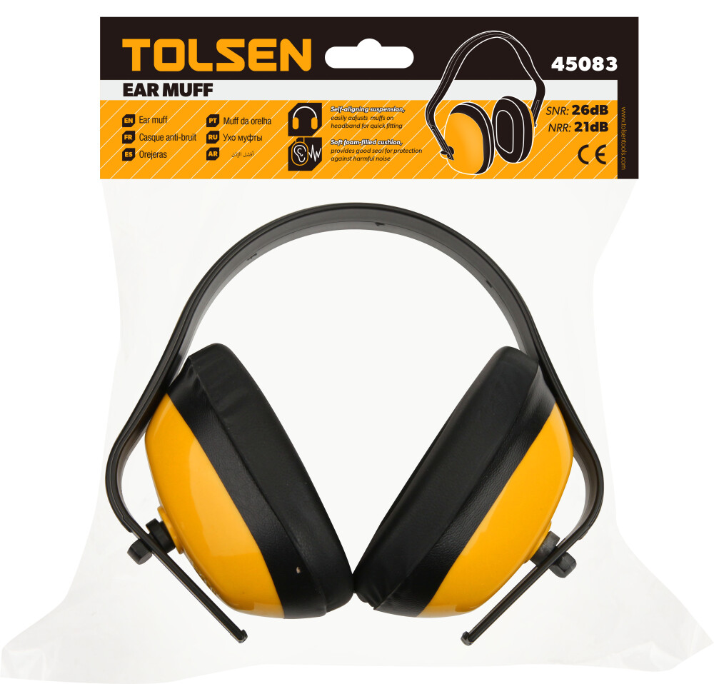 Наушники прошли проверку по стандартам CE и ANSI, что гарантирует соответствие требованиям безопасности для защиты слуха в профессиональной среде. Дужка автоматически подстраивается под форму головы пользователя, позволяет легко отрегулировать положение наушников для более надёжной и комфортной фиксации. Внутренние части, контактирующие с ухом, снабжены мягкими подушками из пеноматериала, что уменьшает дискомфорт и раздражение кожи при длительном ношении.