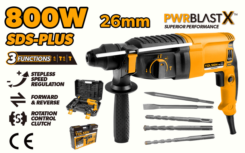 Инструмент укомплектован патроном SDS-plus - смена рабочей оснастки происходит за считанные секунды.