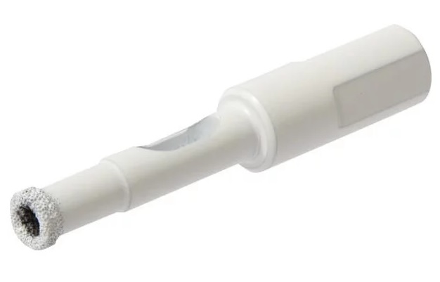 Специальная конструкция предотвращает смещение сверла при начале сверления. Обратная спираль обеспечивает подачу воды к режущей кромке для эффективного охлаждения. Не требует предварительного сверления, что ускоряет процесс работы.