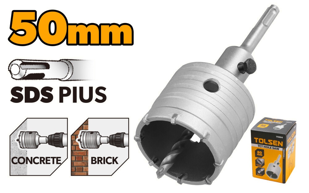 Коронка твердосплавная Tolsen подходит для работы с перфораторами имеющих посадку SDS-plus. Поставляется в комплекте с центрирующим сверлом, поэтому сразу готова к работе. Подходит для ударного сверления, что значительно увеличивает варианты применения.