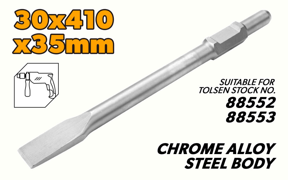 - Зубило плоское HEX30 35x410мм Industrial Tolsen