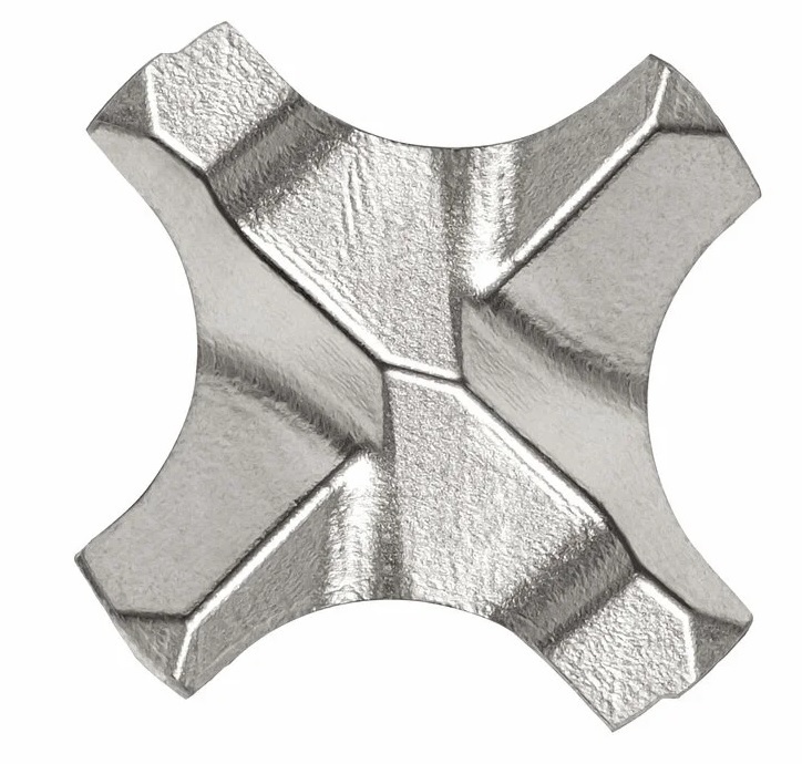 - Четыре симметричные режущие кромки установленные под углом 90° гарантируют идеально круглые отверстия для анкерного крепления, а так же уменьшают возможность заклинивания бура при встрече с арматурой.