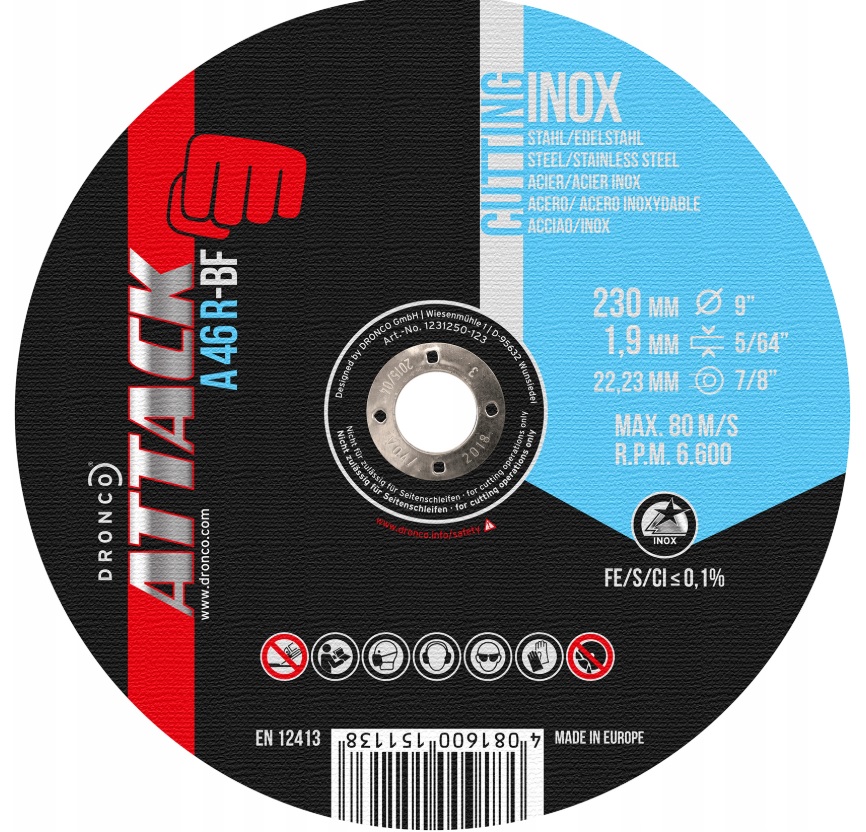 - Диск aбразивный AS46INOX 230X1,9X22,23 T41 ATTACK