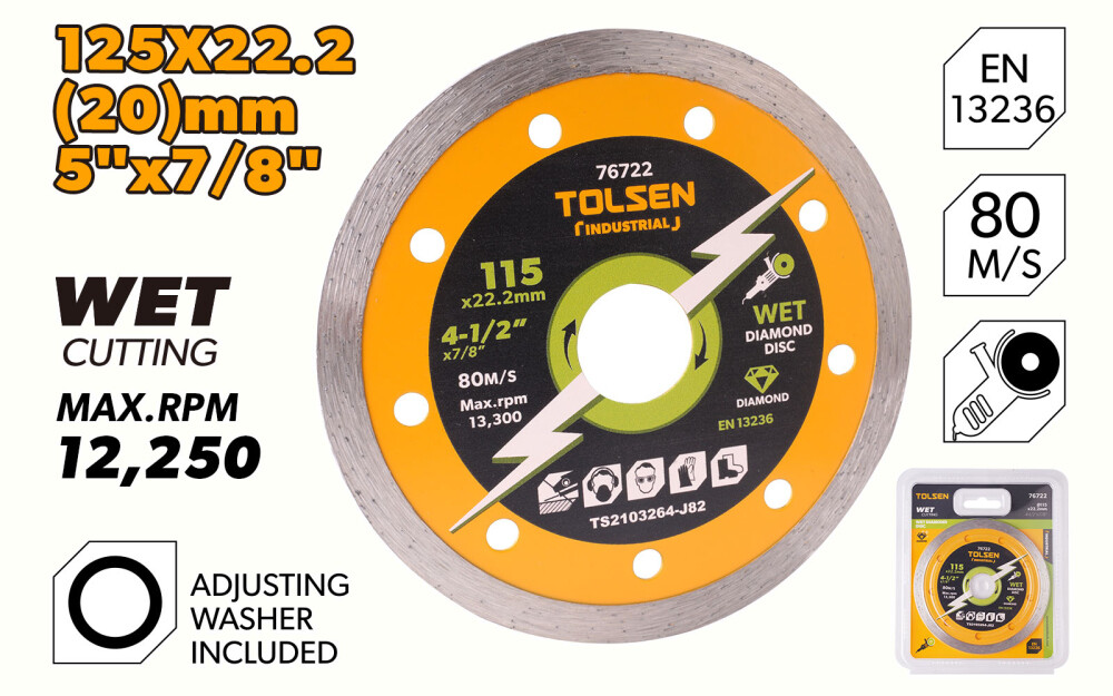- Диск aлмазный 125х22,2мм Непрерывный Industrial Tolsen