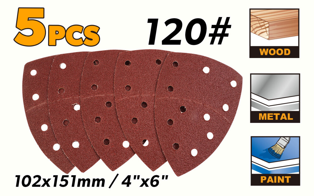 Набор 5 дисков шлифовальных 102х151мм #120 треугольник Tolsen