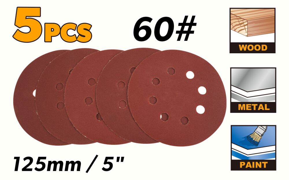 - Набор 5 дисков шлифовочных 125мм #60 Tolsen
