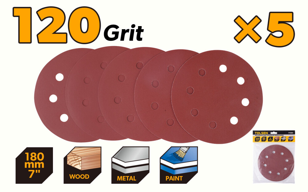 Набор 5 дисков шлифовочных 180мм #120 Tolsen