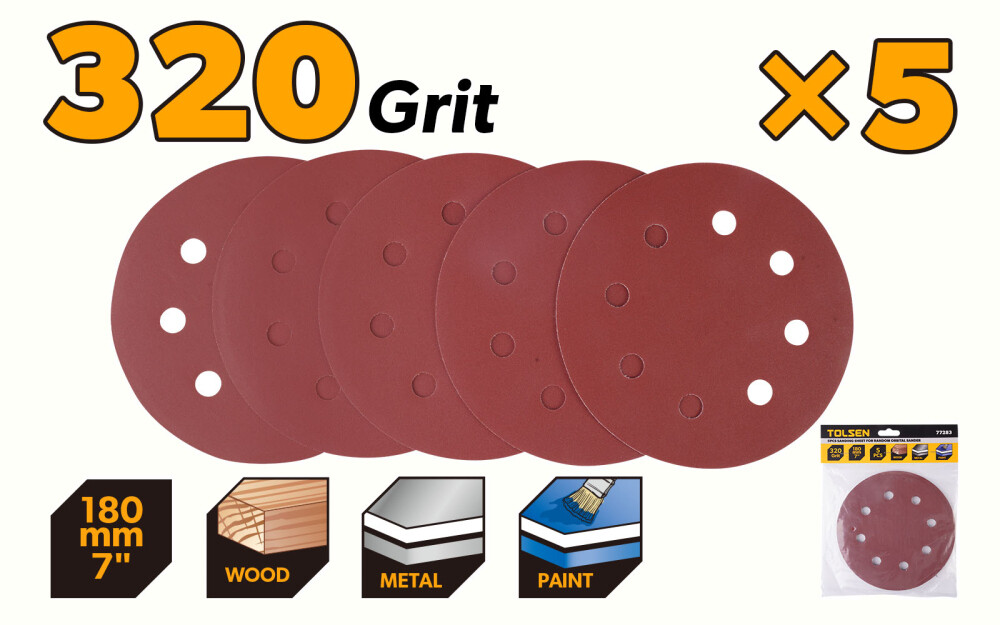 Набор 5 дисков шлифовочных 180мм #320 Tolsen