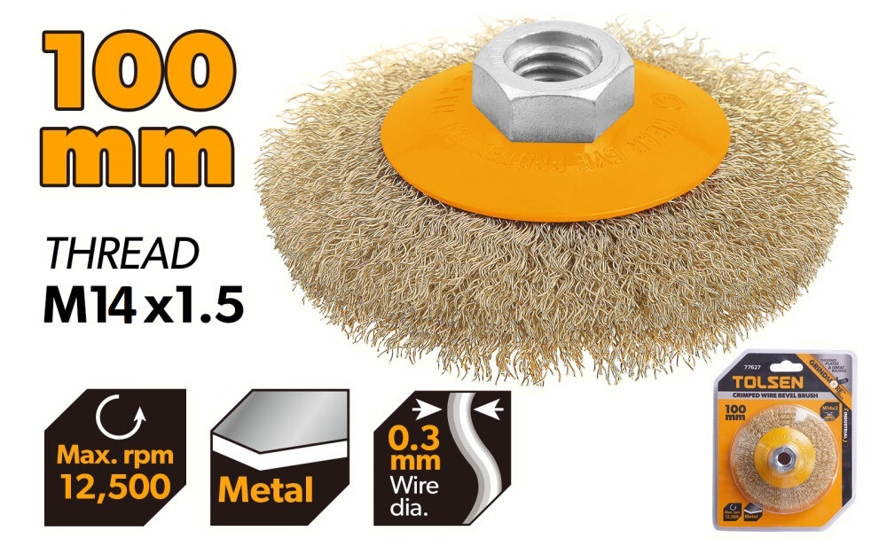 - Щетка проволочная плоская 100мм M14 Industrial Tolsen