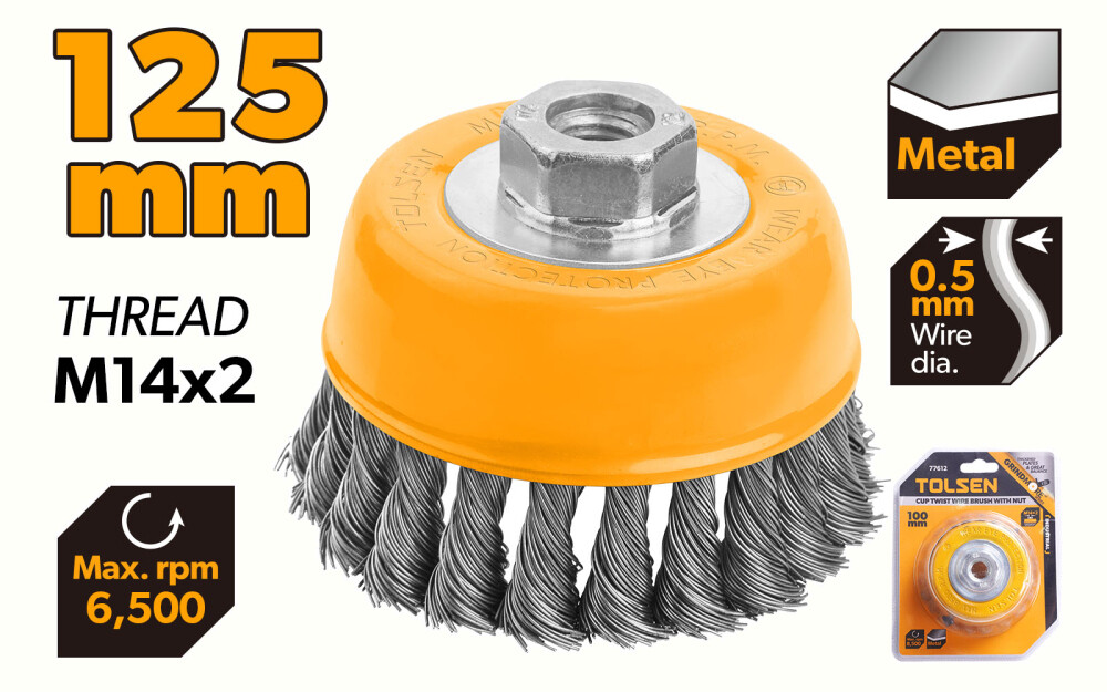 - Щетка проволочная витая чашка 125мм М14 Industrial Tolsen