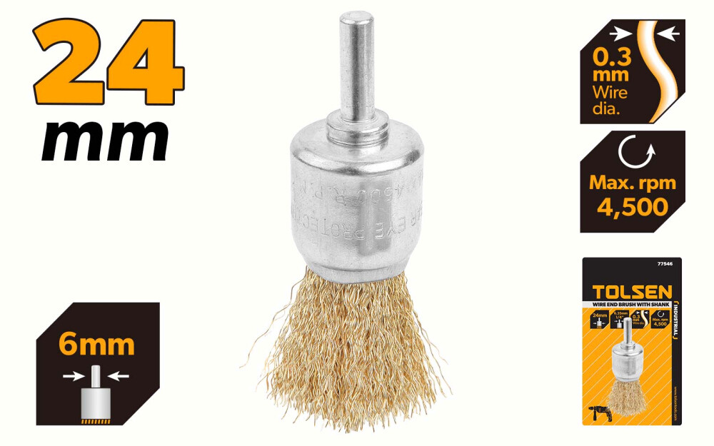 Стальная проволока с бронзовым покрытием обеспечивает длительный срок службы даже при интенсивном использовании и чистке грубых поверхностей, снижая замену инструмента. Хвостовик диаметром 6,35 мм (1/4”) обеспечивает жесткое и надежное крепление, минимизирует вибрации и обеспечивает стабильную работу под нагрузкой.