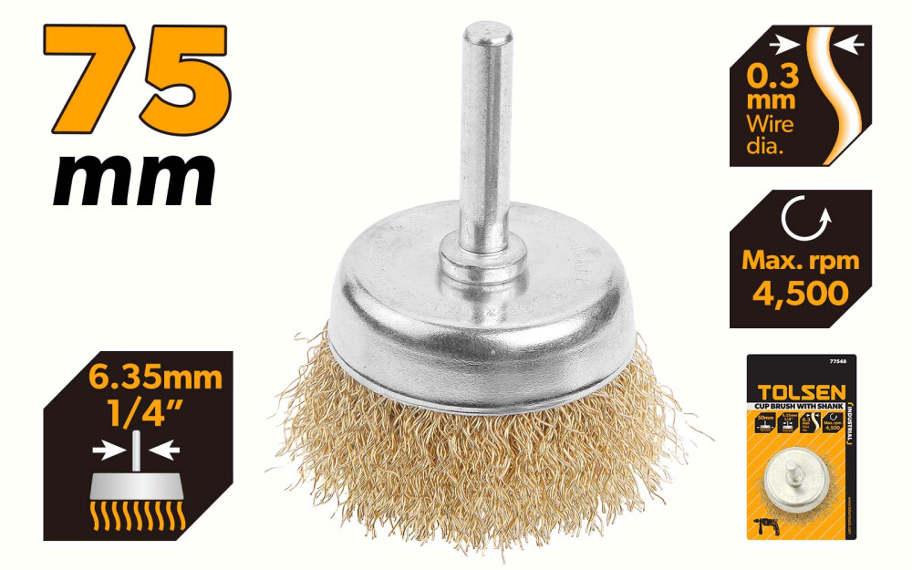 Стальная проволока с бронзовым покрытием обеспечивает длительный срок службы даже при интенсивном использовании и чистке грубых поверхностей, снижая замену инструмента. Хвостовик диаметром 6,35 мм (1/4”) обеспечивает жесткое и надежное крепление, минимизирует вибрации и обеспечивает стабильную работу под нагрузкой.