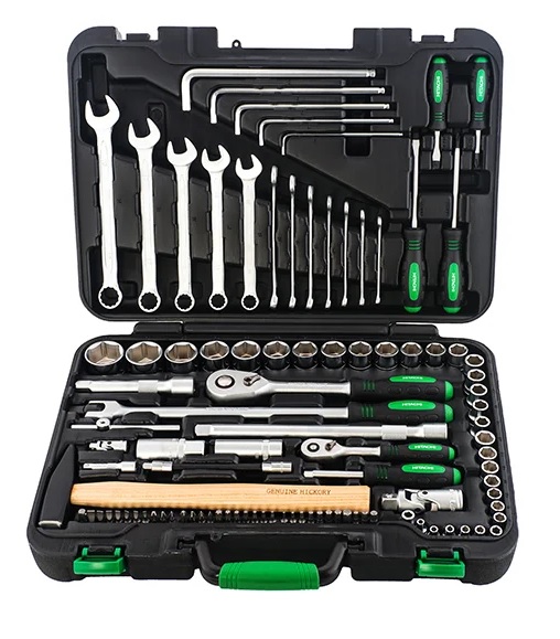 Инструменты из набора торцевых головок Hitachi 1/4" и 1/2" 101 шт 774012 укомплектованы в закрывающийся кейс, который облегчает процесс хранения и транспортировки.