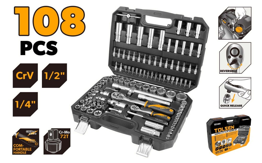 Набор 108 головок и ключей 1/2+1/4 Tolsen